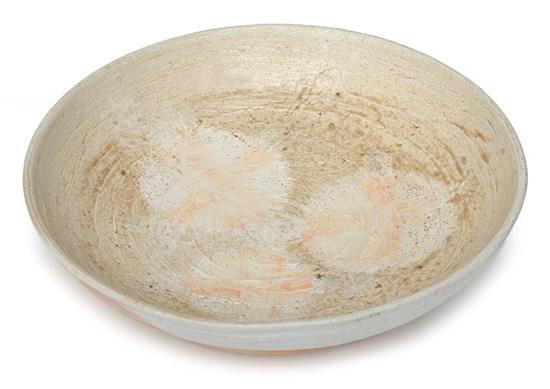 20TH CENTURY RARE JAPANESE WHITE GLAZED HAGI BOWL, 31CM DIAMETER