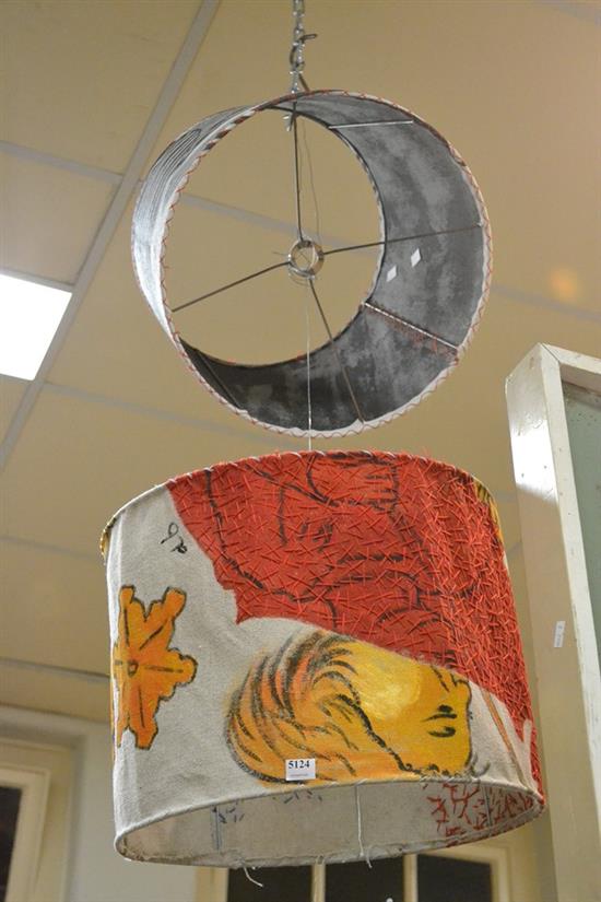 THREE LIGHT SHADES HAND-PAINTED BY DAVID BROMLEY, 30 HEIGHT, 35CM DIAMETER