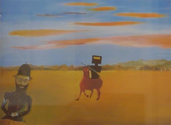 A REPRODUCTION SIDNEY NOLAN PRINT IN GOLD FRAME