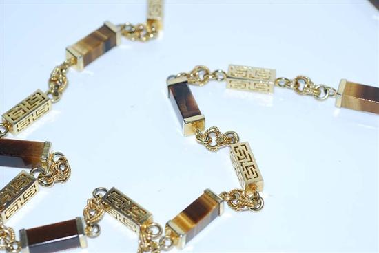 A GILT NECKLACE SET WITH TIGERS EYE
