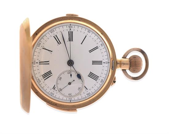A GOLD QUARTER REPEATING CHRONOGRAPH POCKET WATCH