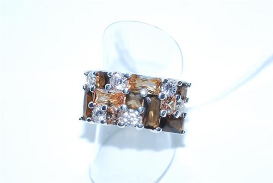 A CUBIC ZIRCONIA AND SMOKEY QUARTZ SET DRESS RING IN STERLING SILVER