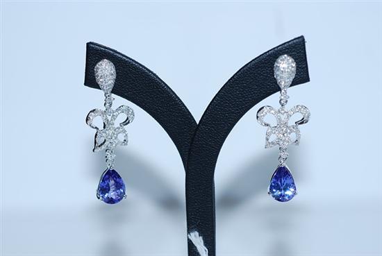 A FANCY PAIR OF TANZANITE AND DIAMOND EARRINGS IN 18CT WHITE GOLD, INDEPENDENT VALUATION AVAILABLE