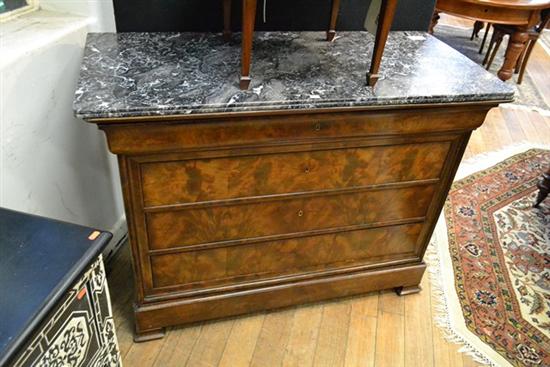 A LATE 19TH CENTURY FRENCH CHEST OF DRAWERS WITH MARBLE TOP