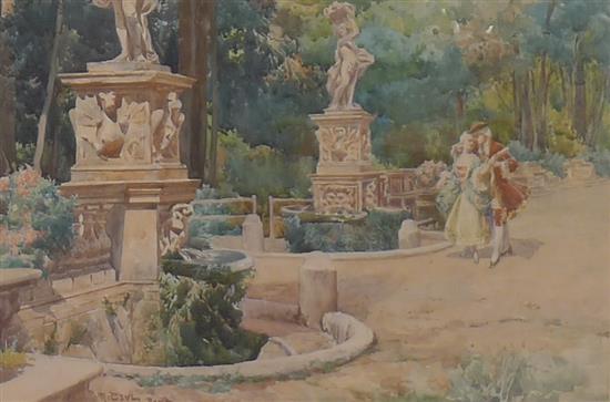 R. CAVL, COUPLE IN THE GARDEN, WATERCOLOUR, 33 X 50CM