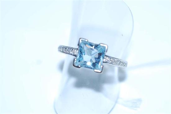 AN AQUAMARINE AND DIAMOND DRESS RING IN 18CT WHITE GOLD