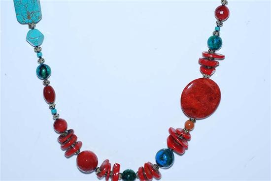 A GEM SET NECKLACE INCLUDING TURQUOISE AND SMOKEY QUARTZ