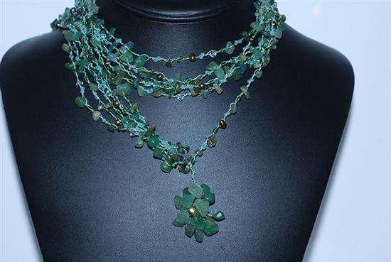 A GEM SET NECKLACE INCLUDING AVENTURINE QUARTZ