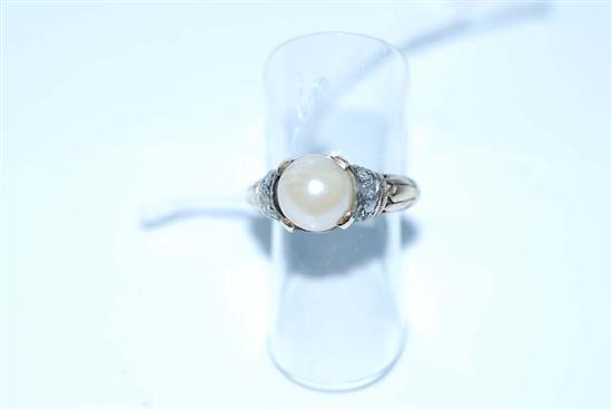 A CULTURED PEARL SET DRESS RING WITH DIAMOND SET SHOULDERS, ALL TESTED 14CT GOLD