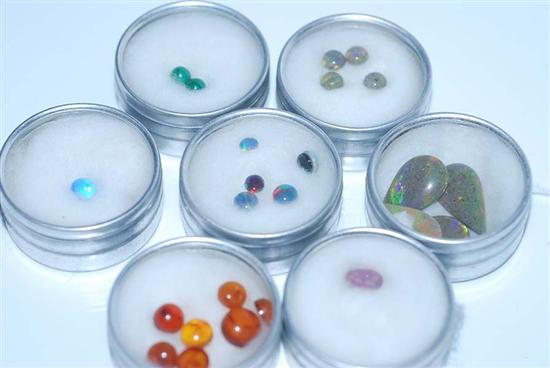 A COLLECTION OF LOOSE CABOCHON AND FREEFORM GEMSTONES INCLUDING OPAL, AMBER AND MALACHITE