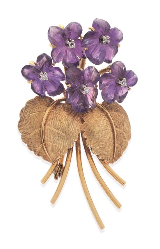 AN AMETHYST AND DIAMOND BOUQUET BROOCH
