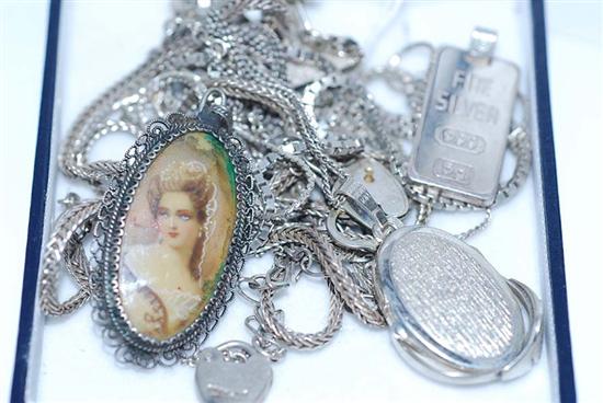 A COLLECTION OF SILVER AND STERLING SILVER JEWELLERY INCLUDING NECK CHAINS, PENDANTS AND BRACELETS