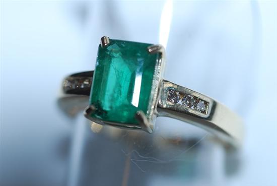 AN EMERALD AND DIAMOND RING IN 14CT GOLD