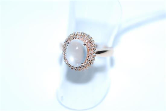 A JADE AND DIAMOND DRESS RING IN 18CT ROSE GOLD, WITH CERTIFICATION