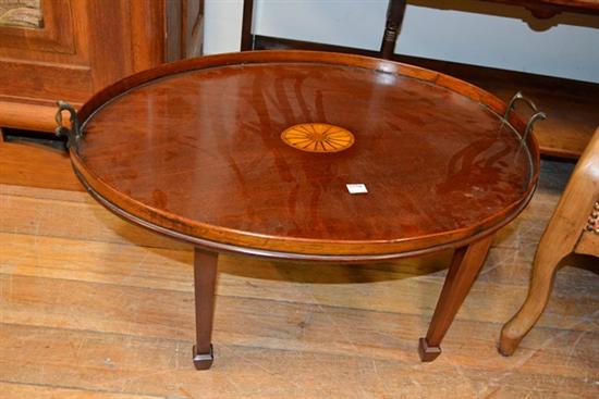 19TH CENTURY OVAL MAHOGANY INLAID TABLE TRAY
