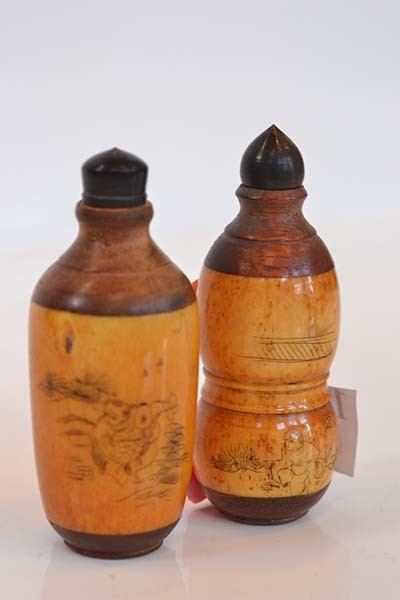 TWO CHINESE BONE INSET SNUFF BOTTLES INLC DOUBLE GOURDED