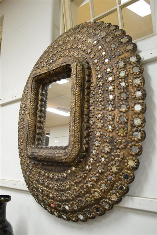 A DECORATIVE GILT MIRROR WITH MIRRORED INSERTS