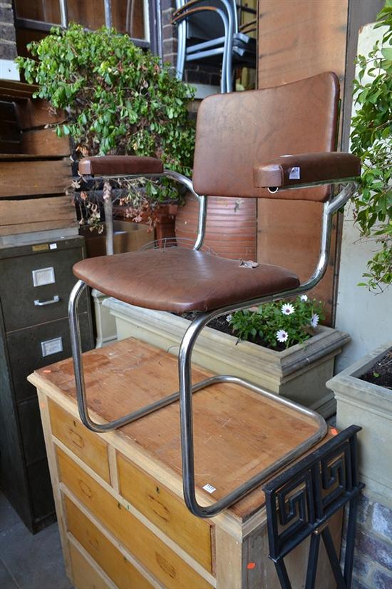 A 1950s CANTERLEVER ARMCHAIR ON CHROME BASE