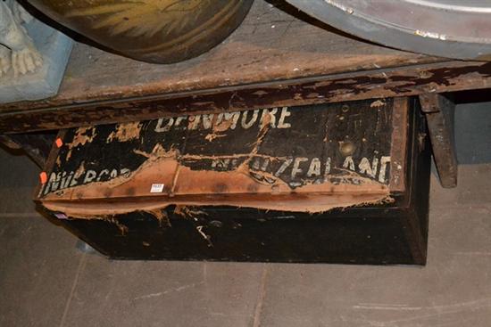 A LATE 19TH CENTURY RUSTIC CANVAS AND METAL BOUND TRUNK.