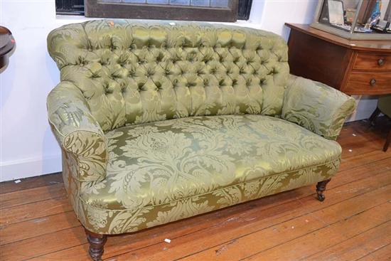 A VICTORIAN BUTTON BACKED NURSERY SUITE OF A DOUBLE SEATER, AN ARM CHAIR AND A NURSING CHAIR