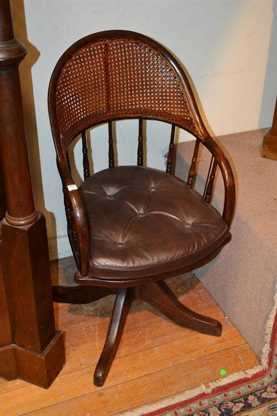 A VICTORIAN OAK AND SPLIT CANE CAPTAINS CHAIR