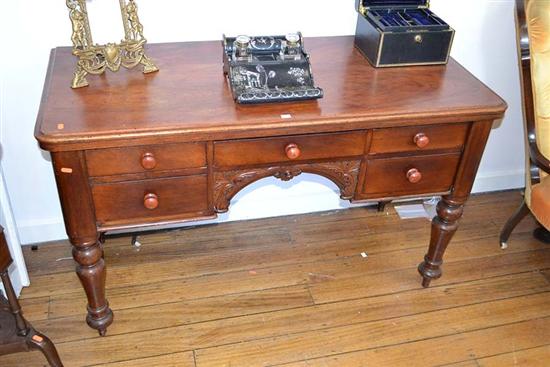 A VICTORIAN CEDAR FIVE DRAWER DESK