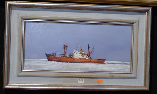 I B ODFELDT, MS NELLA DAN 1995, OIL ON BOARD, 10 X 44CM
