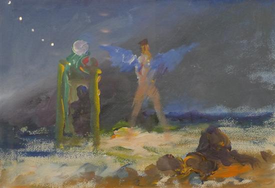 JOHN HOWLEY, THE MOON SHADOW 1981, ACRYLIC ON PAPER, 28 X 41CM