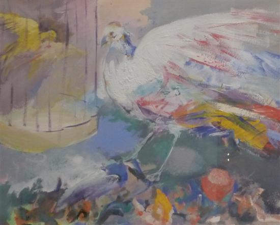 JOHN HOWLEY, TWO BIRDS 1982, ACRYLIC ON PAPER, 46 X 59CM