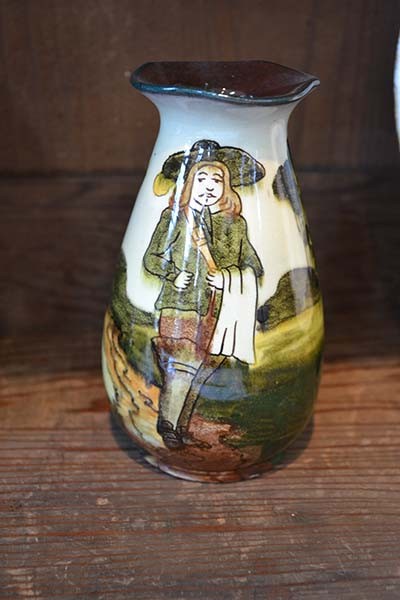 SMALL TORQUAY WARE VASE WITH TRAVELLER SCENE