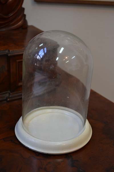 SMALL GLASS DOME ON PAINTED WOODEN BASE