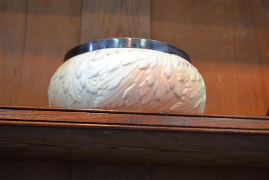 LOCKE & CO WORCESTER BLUSH IVORY FOLIATE BOWL WITH SILVER PLATE MOUNTED RIM