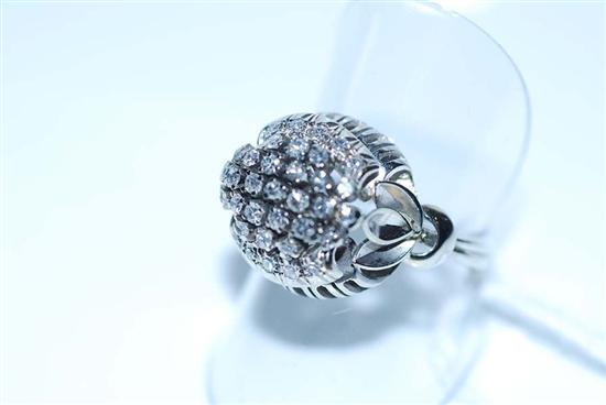 AN 18CT WHITE GOLD AND DIAMOND 'BOMBE' RING