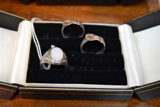 THREE ANTIQUES RINGS INCL. TWO BUCKLE RINGS AND AN OPAL SIGNET RING ALL IN SILVER