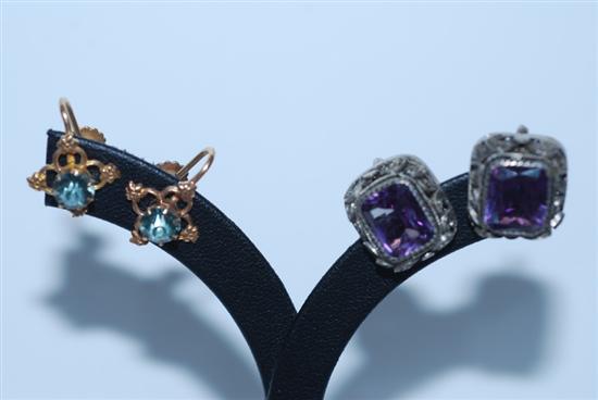 TWO PAIRS OF ANTIQUE EARRINGS INCLUDING BLUE PASTE SCREWBACKS IN 9CT GOLD AND PURPLE PASTE SCERWBACKS IN SILVER
