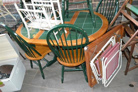 AN EXTENDING COTTAGE STYLE TABLE WITH SIX CHAIRS
