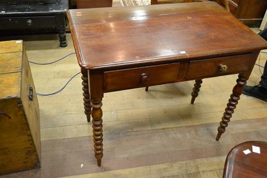 A VICTORIAN CEDAR DESK WITH TWO DRAWERS AND BARLEY TWIST LOGS