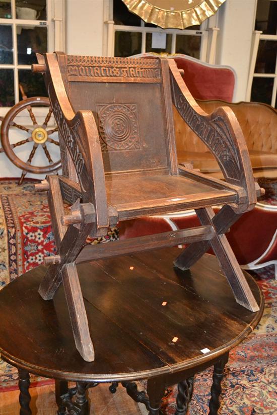 A LATE 19TH CENTURY OAK GLASTONBURY CHAIR