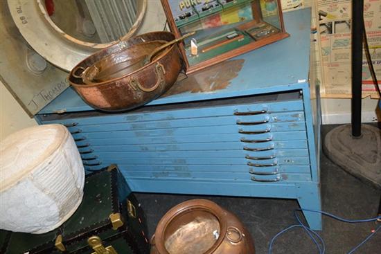 INDUSTRIAL BLUE PLAN DRAWERS (MISSING ONE DRAWER)
