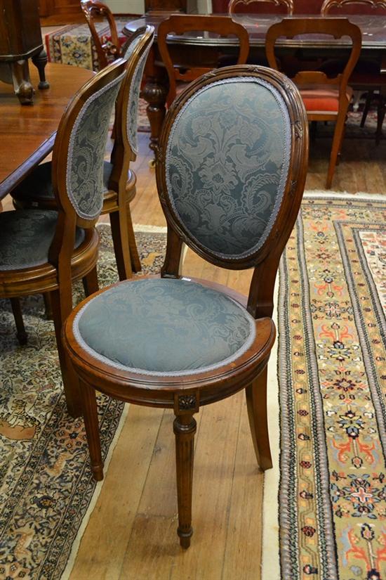 AN EARLY 20TH CENTURY SET OF SIX LOUIS XVI STYLE MAHOGANY DINING CHAIRS