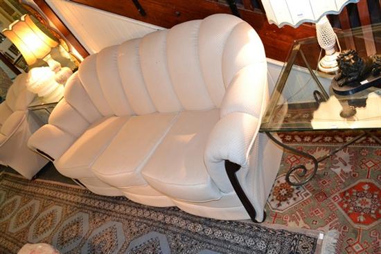 A STYLISH ART DECO INSPIRED COUCH COMPRISING OF THREE SEATER SOFA AND TWO MATCHING ARMCHAIRS