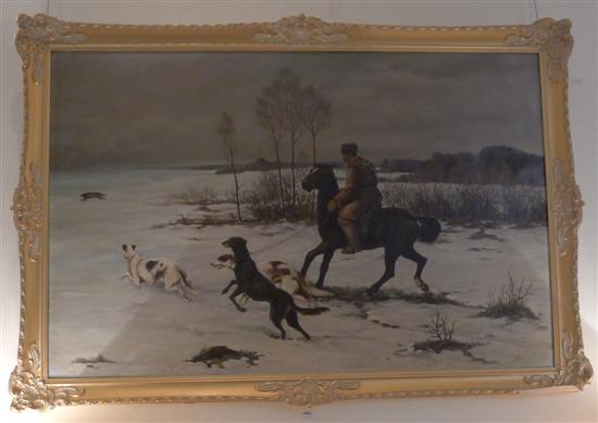 ARTIST UNKNOWN, HUNTING SCENE, OIL ON CANVAS BOARD, 73 X 112CM