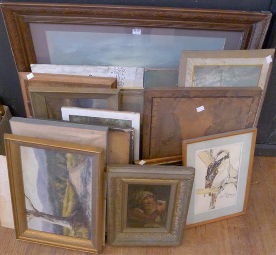 A GROUP OF ASSORTED WORKS INCLUDING STILL LIFE, WATERCOLOUR WORKS AND OTHERS