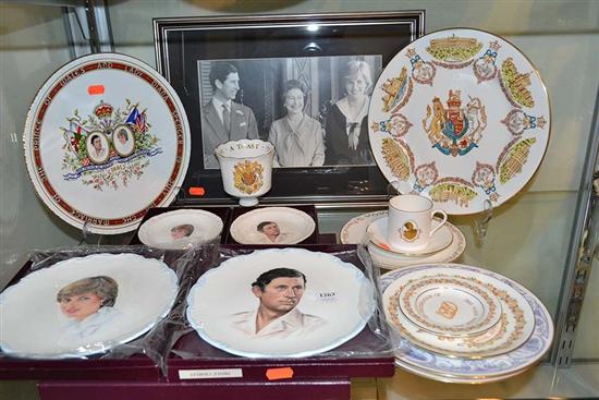 A LARGE COLLECTION OF ROYAL MEMORABILLIA PLATES, FRAMED PHOTO, AND CUP & SAUCER. INCLUDING: ROYAL ALBERT, ROYAL WORCESTER, WEDGWOOD, PARAGON AND CAVERSWALL.