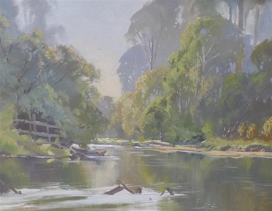 GERARD MUTSAERS, QUIET DAY ON THE YARRA, EAST WARBURTON, OIL ON CANVAS BOARD, 39 X 49CM