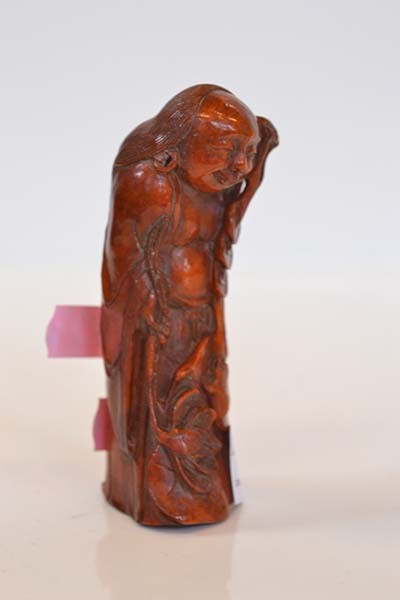 SMALL CHINESE CARVED HORN FIGURE OF LIU HAI
