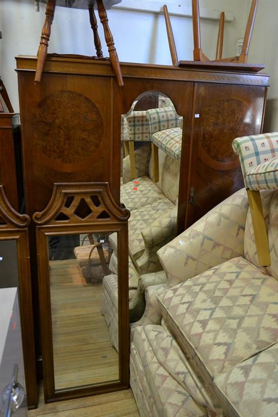 AN EARLY 20TH CENTURY TWO DOOR WARDROBE WITH SINGLE MIRROR AND BURR WALNUT FEATURES
