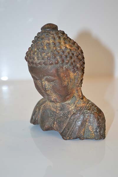 AN ANTIQUE NICKEL BOUND GLAZED DISPLAY CABINET ON CAST IRON FEET, 182CM WIDE X 92CM HIGH X 53CM DEPTH