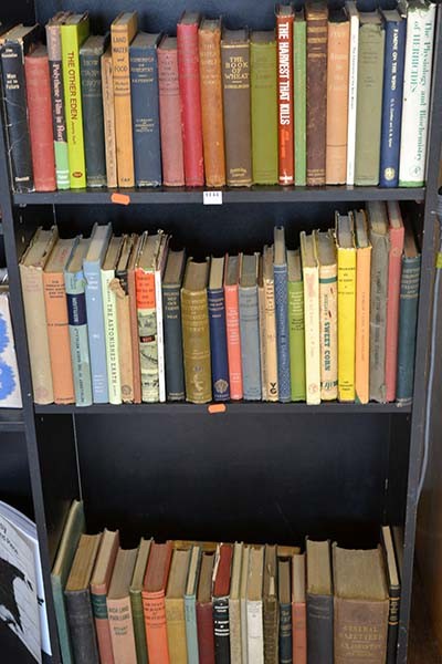 THREE SHELVES OF VINTAGE AGRICULTURE AND SCIENCE BOOKS INCLUDING ''HELPING MEN OWN FARMS'', ''THE BOOK OF WHEAT'' ETC.