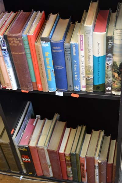 TWO SHELVES OF BOOKS RELATING TO AUSTRALIAN HISTORY INCULDING ''MELBOURNE, JOHN BATMAN''S VILLAGE''